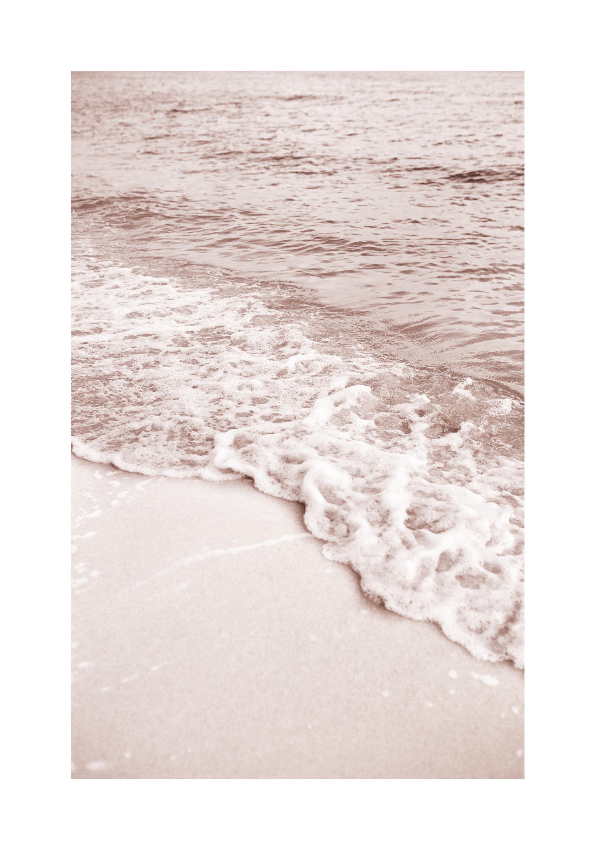 모래사장으로 부드럽게 밀려오는 파도를 담은 자연 풍경 포스터입니다. 전체적으로 은은한 분홍빛이 서정적인 분위기를 자아냅니다. 포스터 사이즈는 흰 여백을 포함한 사이즈입니다.